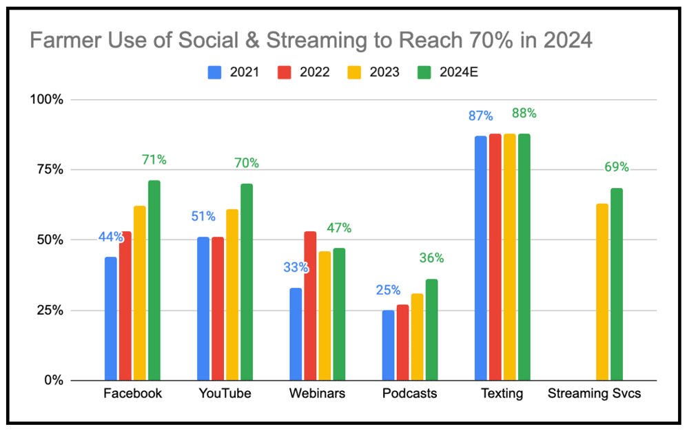 According to Farm Journal Research, producer use of social media and streaming was projected to reach 70% in 2024.
